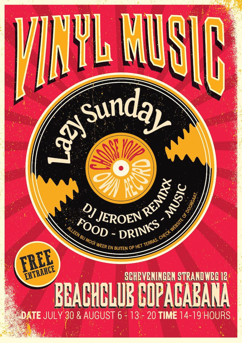 DJ draait vinyl records op zondagmiddag op ons terras. Gezellige mix van retro hits, disconummers en back to the 80/90’s/00 voor een lazy Sunday!